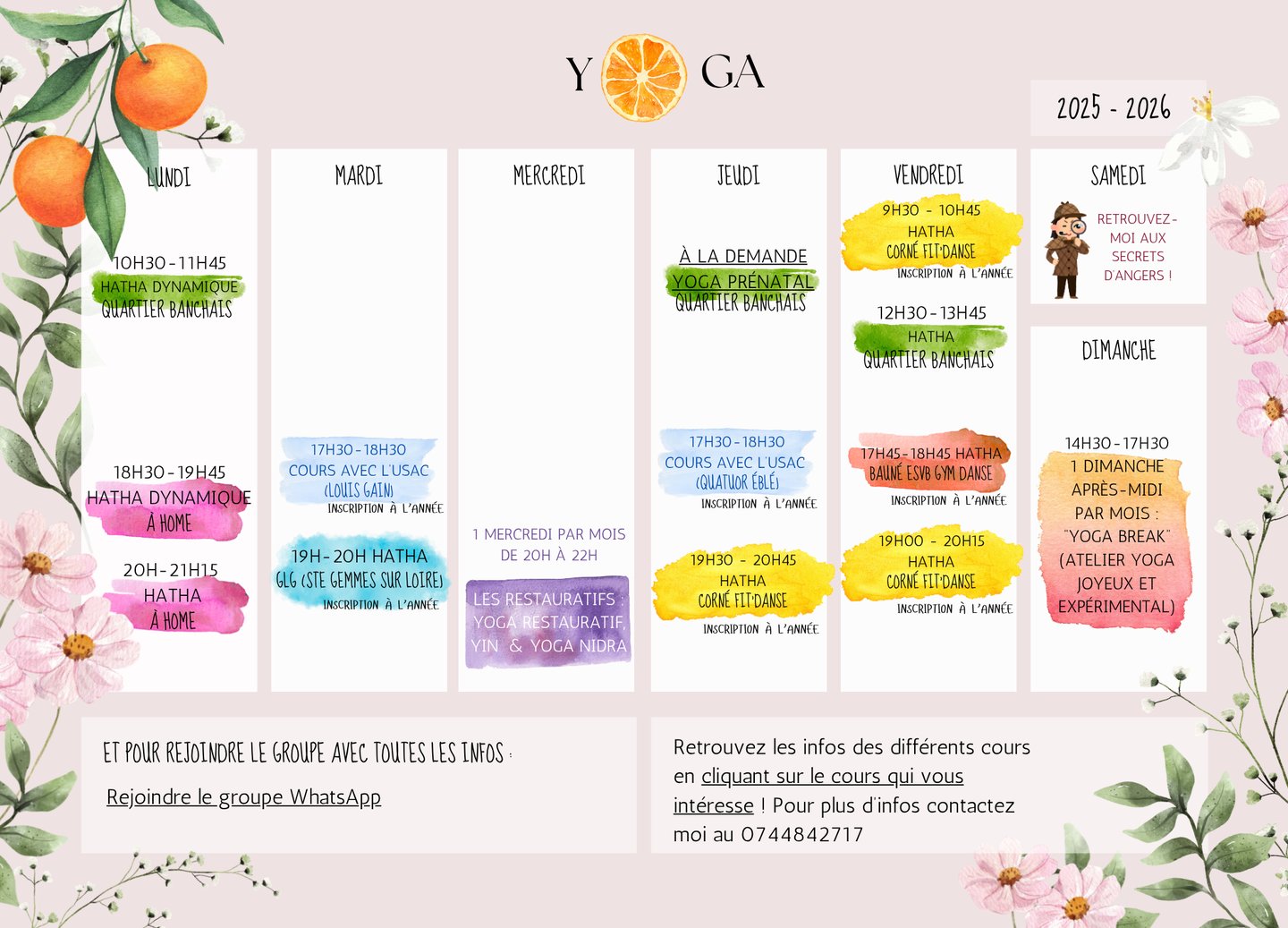 Retrouvez moi lors d'ateliers pour explorer d'autres façons de pratiquer le yoga !